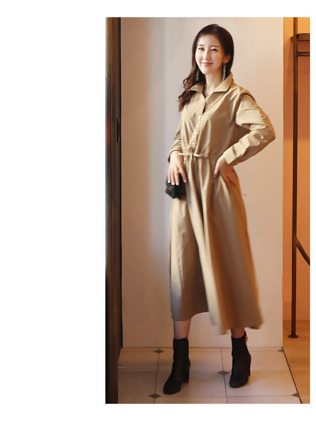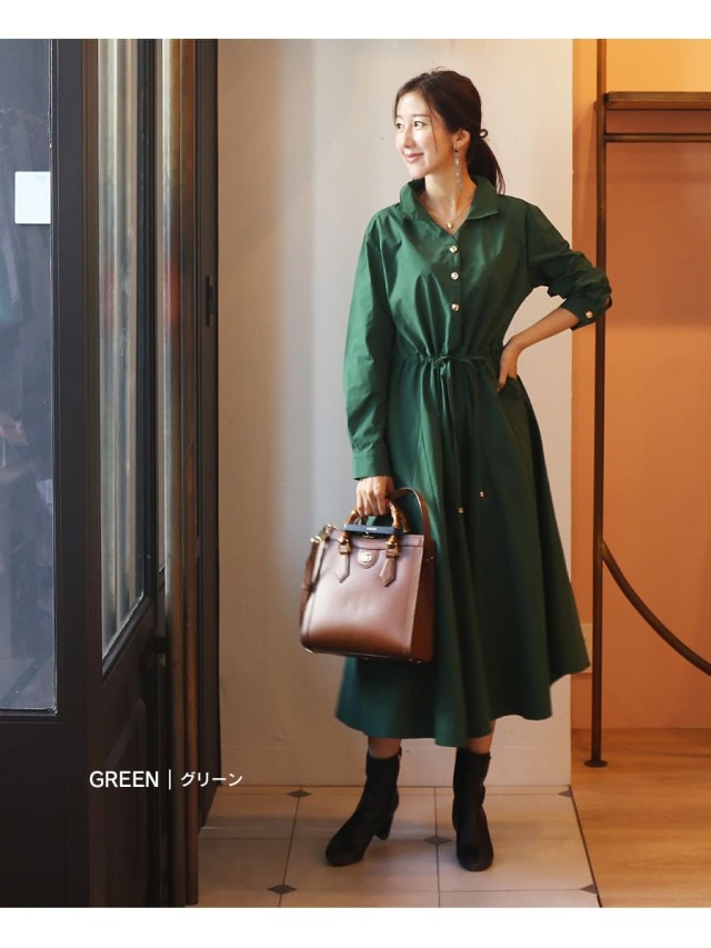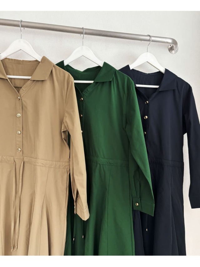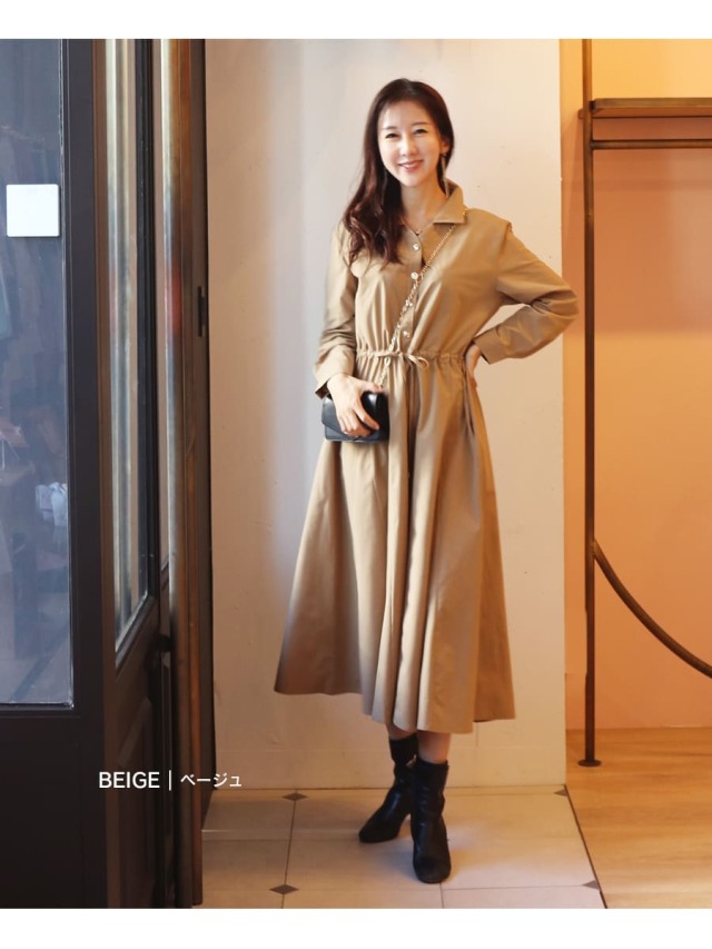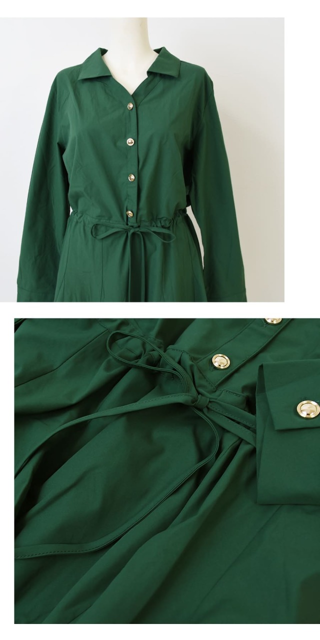 シンプルなデザインのアクセントになっているゴールドボタン&ウエストリボンチャームがリッチな雰囲気をUP!