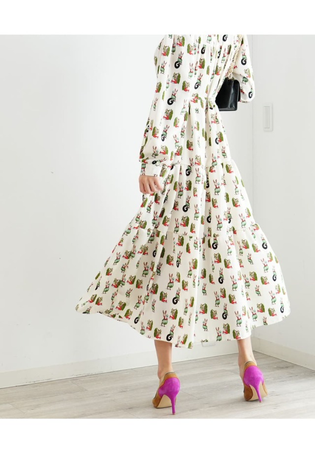 商品カテゴリ:レディース ワンピース ワンピ ドレス ナチュラル キュート レトロ アンティーク 総柄 ラビット柄 ティアード 長袖 春 夏 秋 冬 【公式】AVERYオフィシャルストア