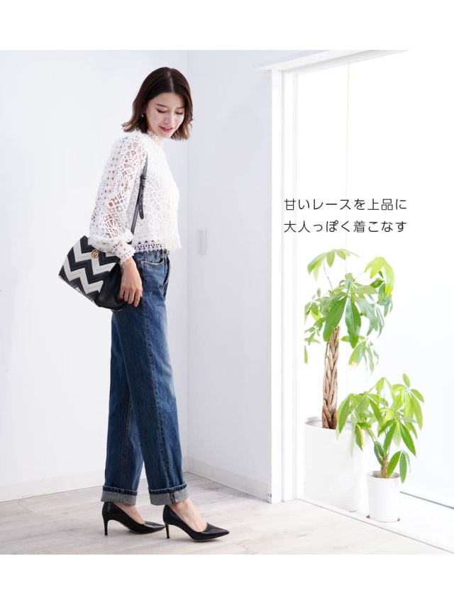 上品なコーデはもちろん、デニムなどのカジュアルなボトムスとも相性抜群。