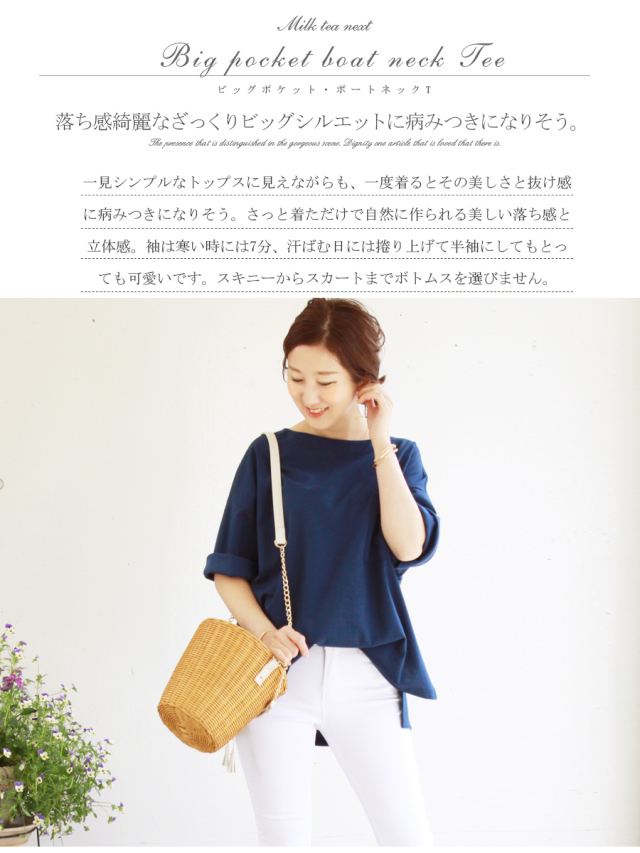 HOMEALL ITEM トップス Tシャツ・カットソー 半袖 <Milk tea next>ビッグポケット・ボートネックT 当店通常価格: ¥3,690(税込) 価格: ¥3,690 (税込) [ポイント還元 110ポイント~] 販売期間: メーカー: 株式会社ミルクティー 型番: n181 カラー / サイズ フリー アイボリー × ネイビーブルー × ブラック 在庫あり 数量: 個 カラーサイズ在庫アイボリーフリー× ネイビーブルーフリー× ブラックフリー在庫あり 返品交換について シンプルながらも落ち感と立体感が美しい、ボトムスを選ばないボートネックカットソー <サイズ> バスト 120cm ウエスト 120cm 着丈 67cm(背面) <素材> 綿 58% モダール 38% ポリウレタン 4% 商品説明 シンプルながらも落ち感と立体感が美しい、ボトムスを選ばないボートネックカットソー 商品仕様 製品名: <Milk tea next>ビッグポケット・ボートネックT(マタニティOK!驚く程綺麗な落ち感) 型番: n181 メーカー: 株式会社ミルクティー 製造年: 2018年